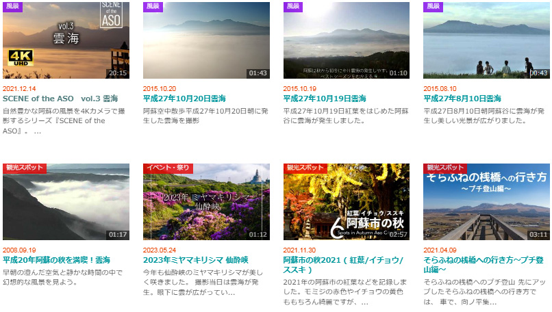阿蘇市の様々な情報を動画で配信している『阿蘇インターネット放送局「WebTV-アソ」で雲海動画をみる事ができます。是非アクセスしてみてください!
